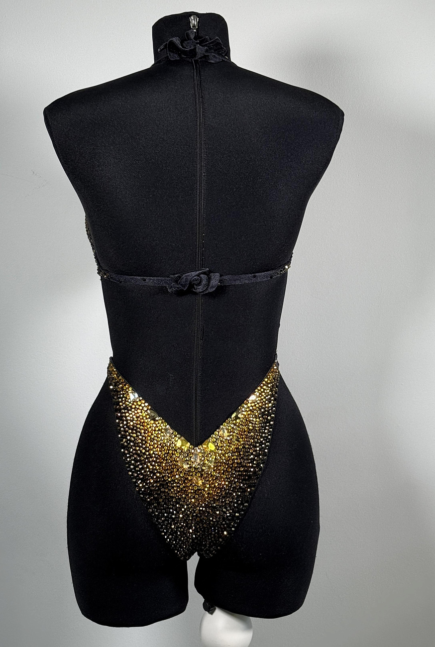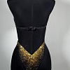 We sew the base using proven stretch fabrics — Italian velvet and approve the fit with you. Then the decoration begins: we use only reliable crystal-setting methods, hand-sewing large stones.