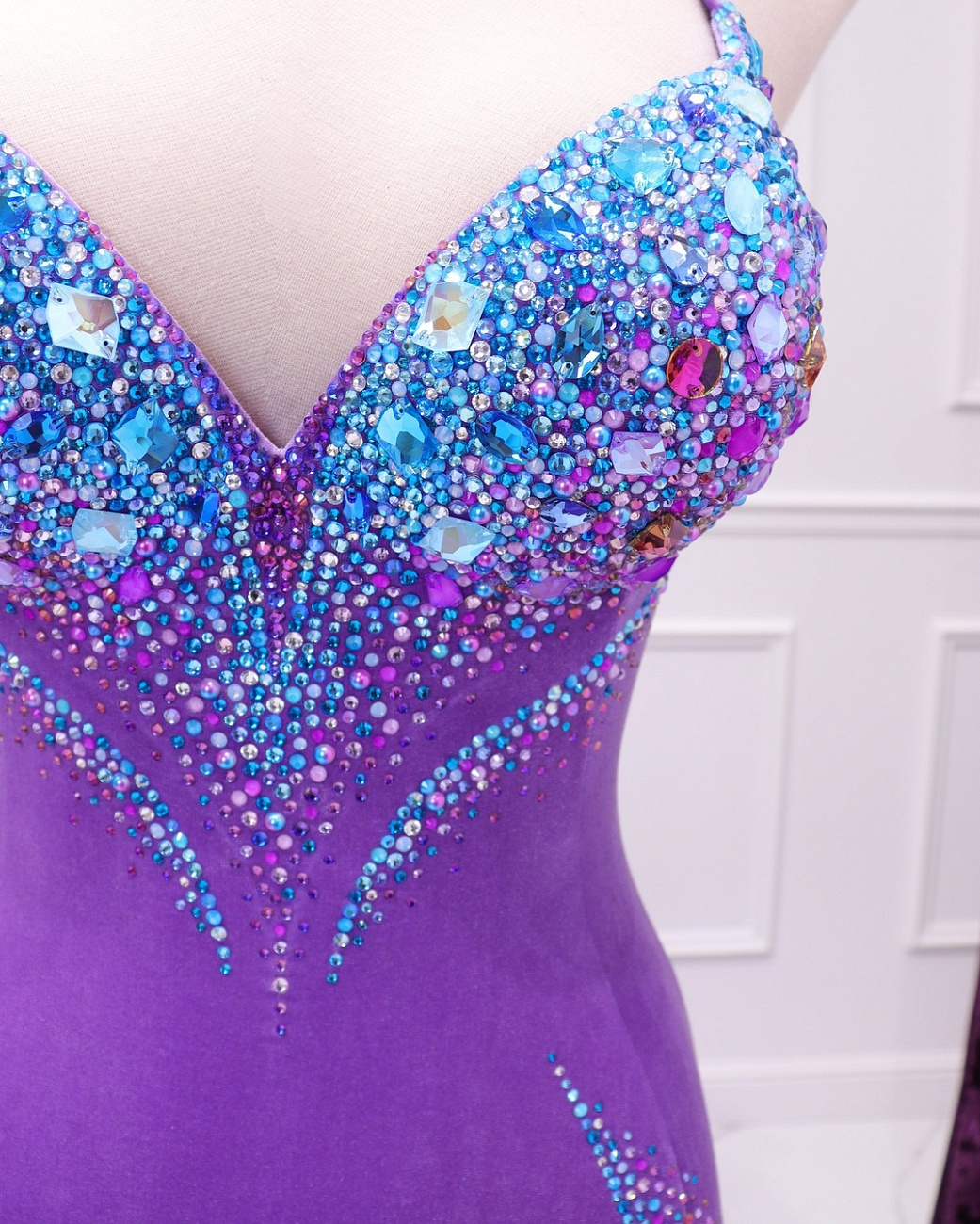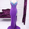We sew the base using proven stretch fabrics — Italian velvet and approve the fit with you. Then the decoration begins: we use only reliable crystal-setting methods, hand-sewing large stones.